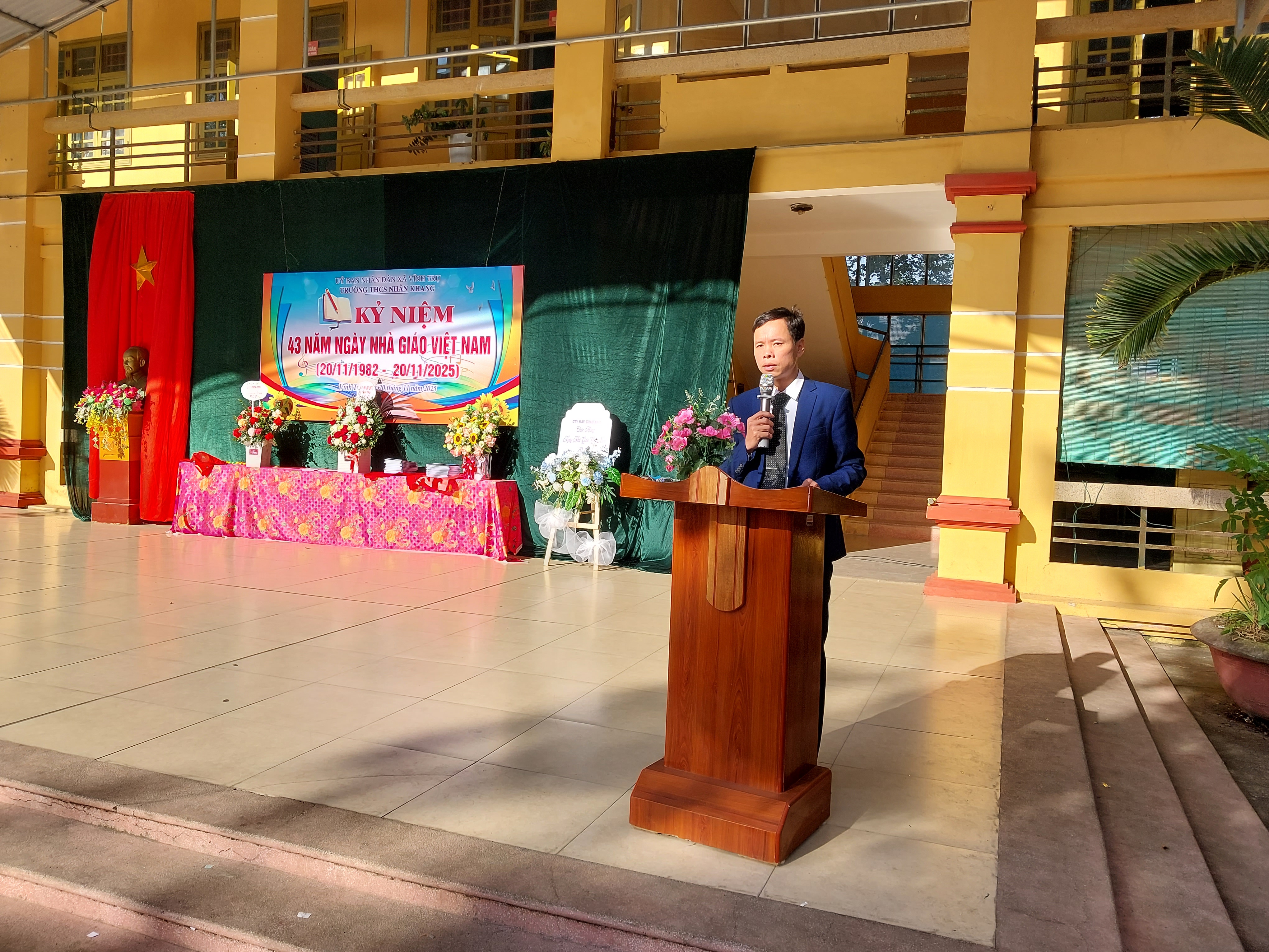 Hòa chung không khí hân hoan của hàng triệu học sinh, sinh viên và các nhà giáo trên khắp mọi miền Tổ quốc, sáng ngày 20/11/2025, Trường THCS Nhân Khang long trọng tổ chức Lễ kỉ niệm 43 năm Ngày Nhà giáo Việt Nam. Đây không chỉ là dịp để tri ân những người thầy, người cô đã tận tụy với sự nghiệp trồng người, mà còn là lúc để thầy và trò nhà trường nhìn lại chặng đường phấn đấu vừa qua, khẳng định những thành quả đạt được và đề ra định hướng phát triển trong giai đoạn mới.