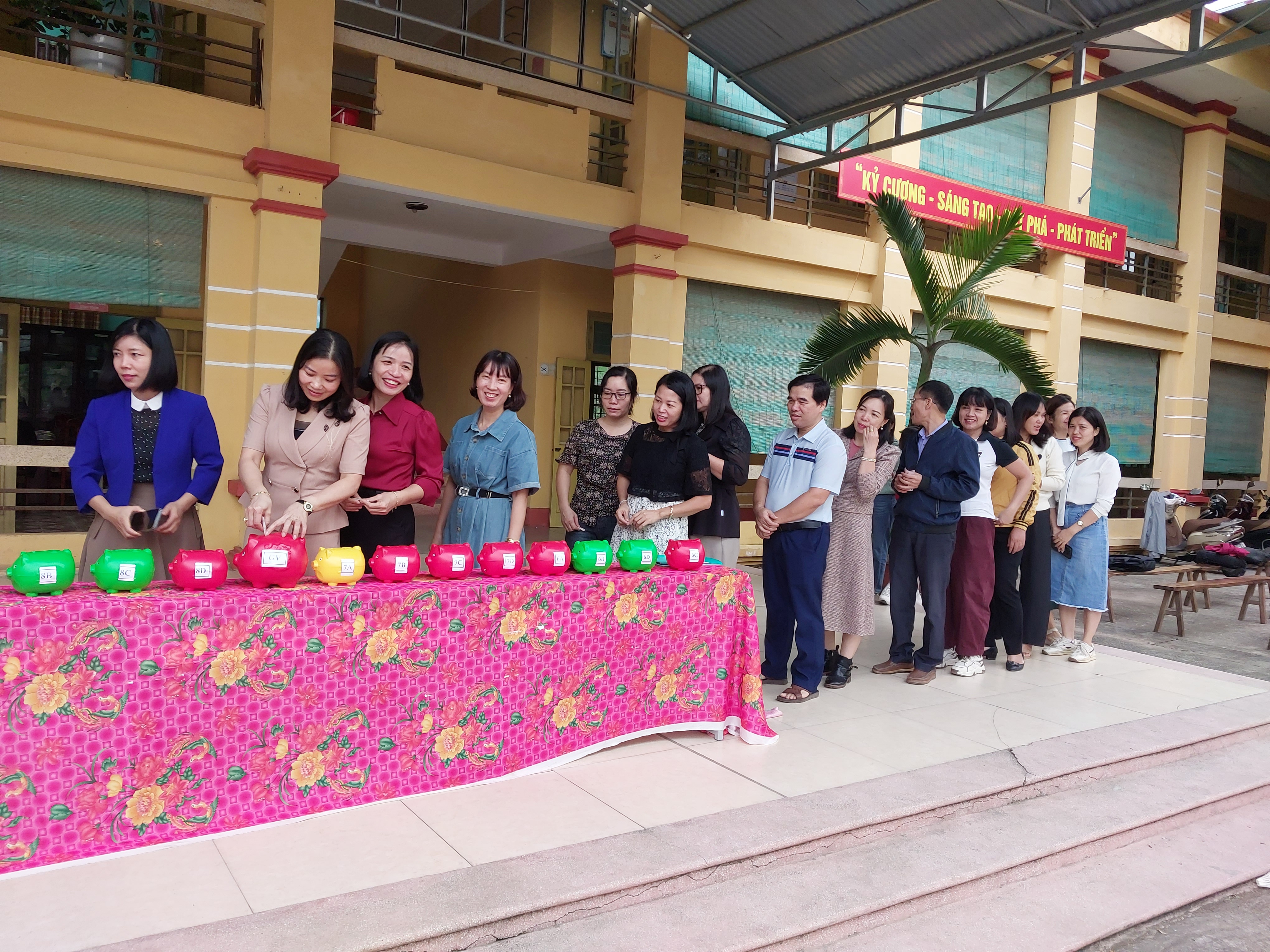 Sáng ngày 27/10/2025 Học sinh, giáo viên trường THCS Nhân Khang tiếp tục hoạt động phát động nuôi heo đất giúp bạn đến trường dưới sự kêu gọi của hội chữ thập đỏ xã Nhân Khang