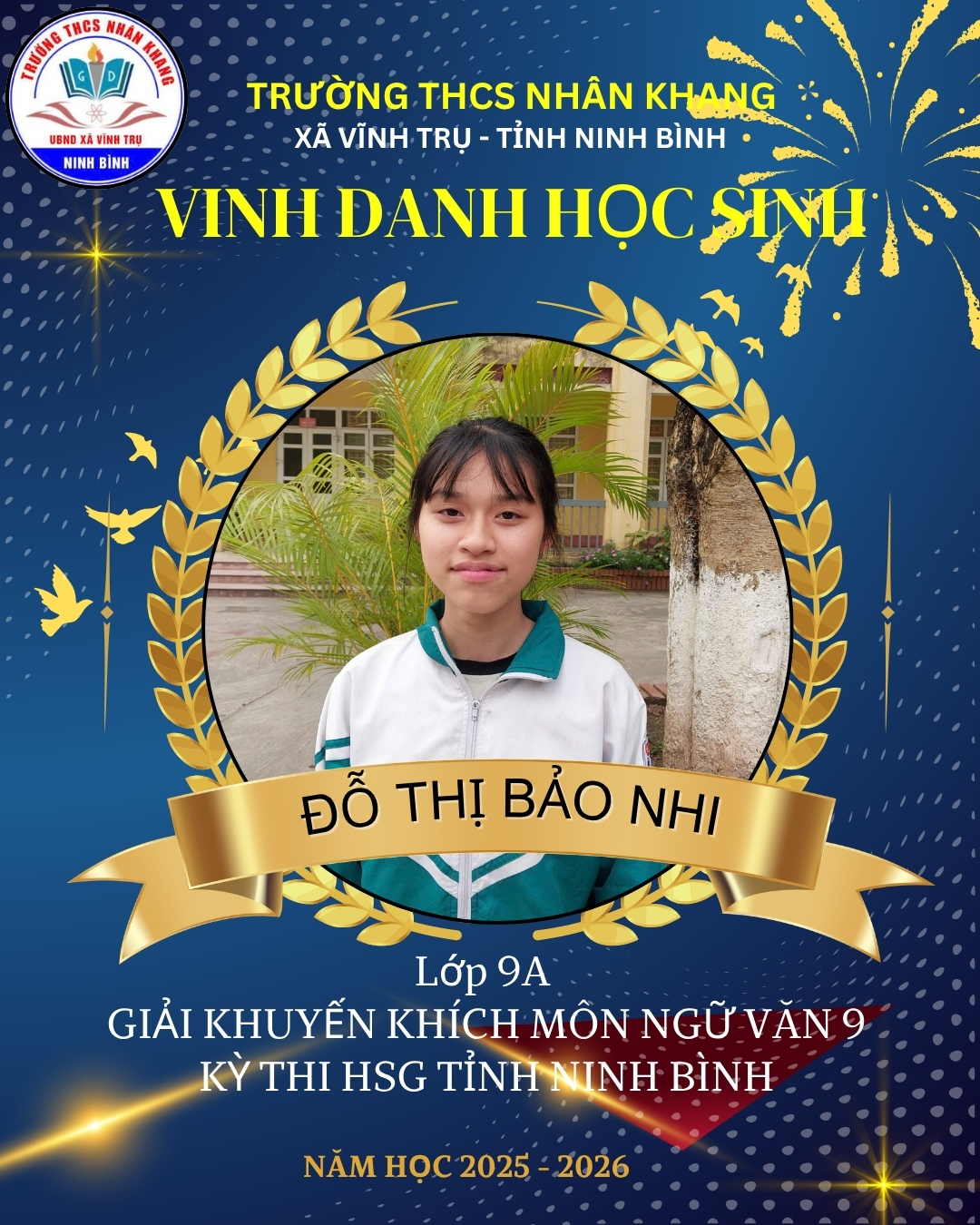 Em: Đỗ Thị Bảo Nhi – Lớp 9A giải khuyến khích môn ngữ văn 9