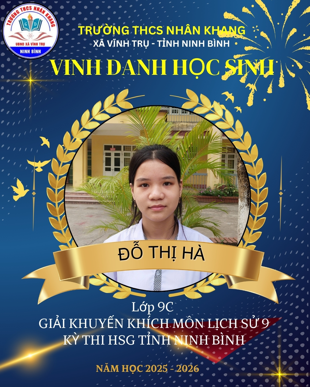 Em: Đỗ Thị Hà – Lớp 9C giải khuyến khích môn lịch sử 9