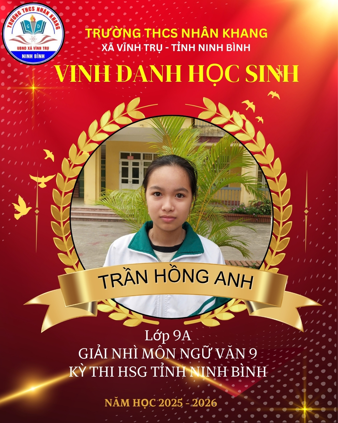 Em: Trần Hồng Anh – Lớp 9A giải nhì môn ngữ văn 9
