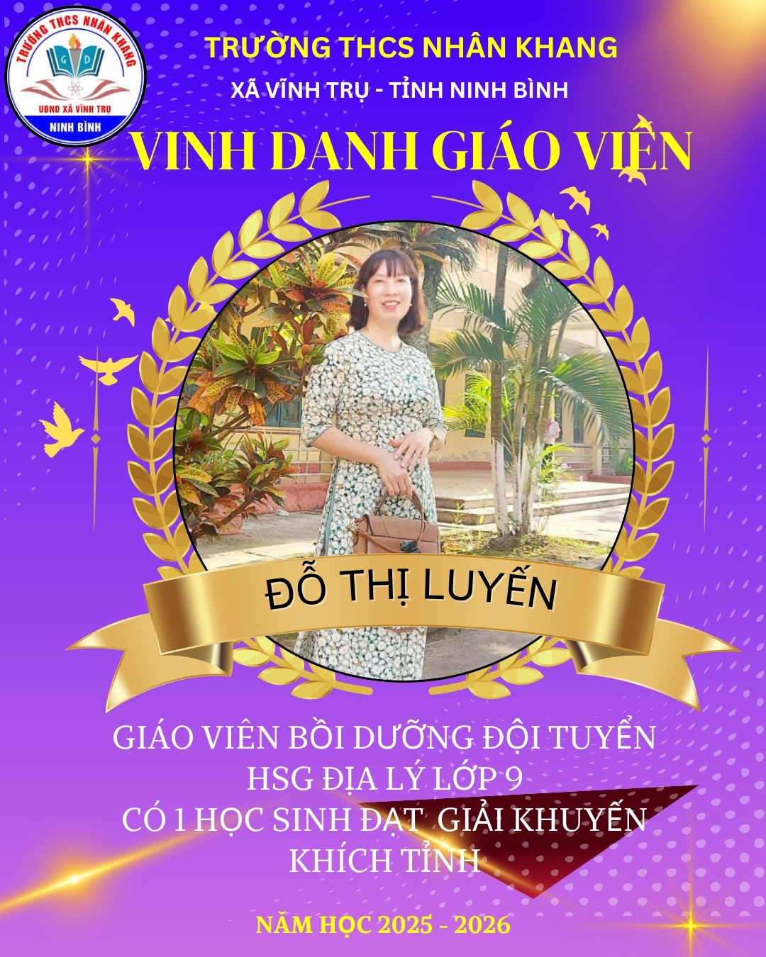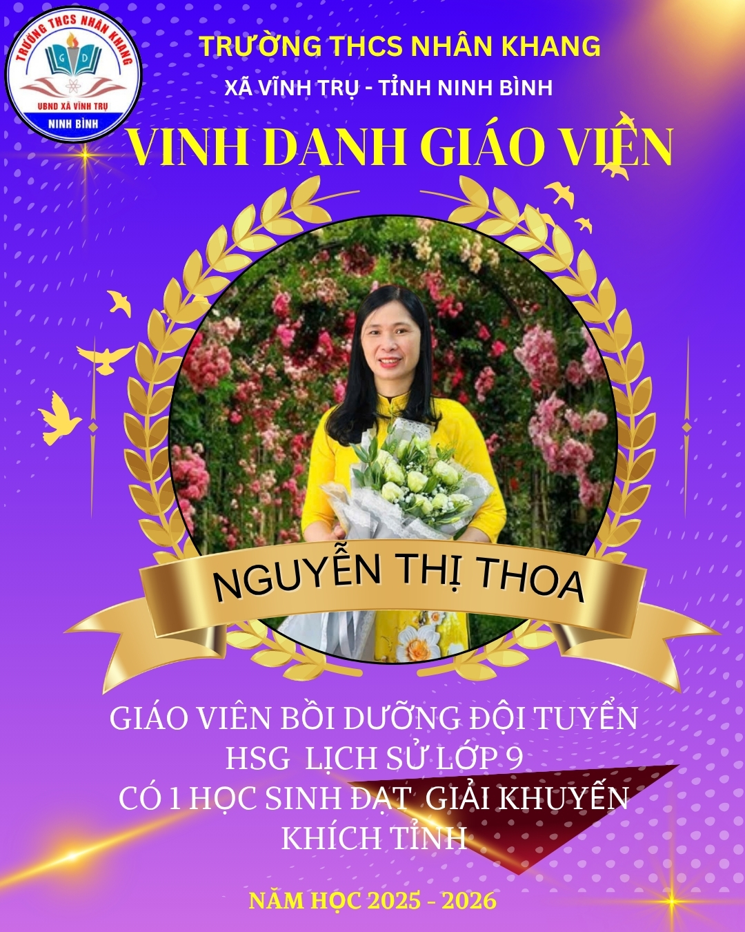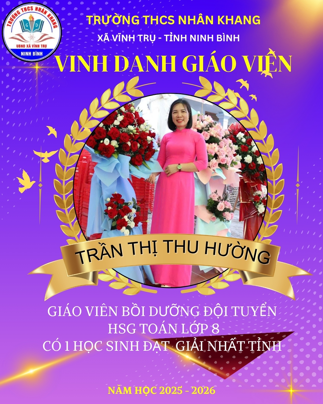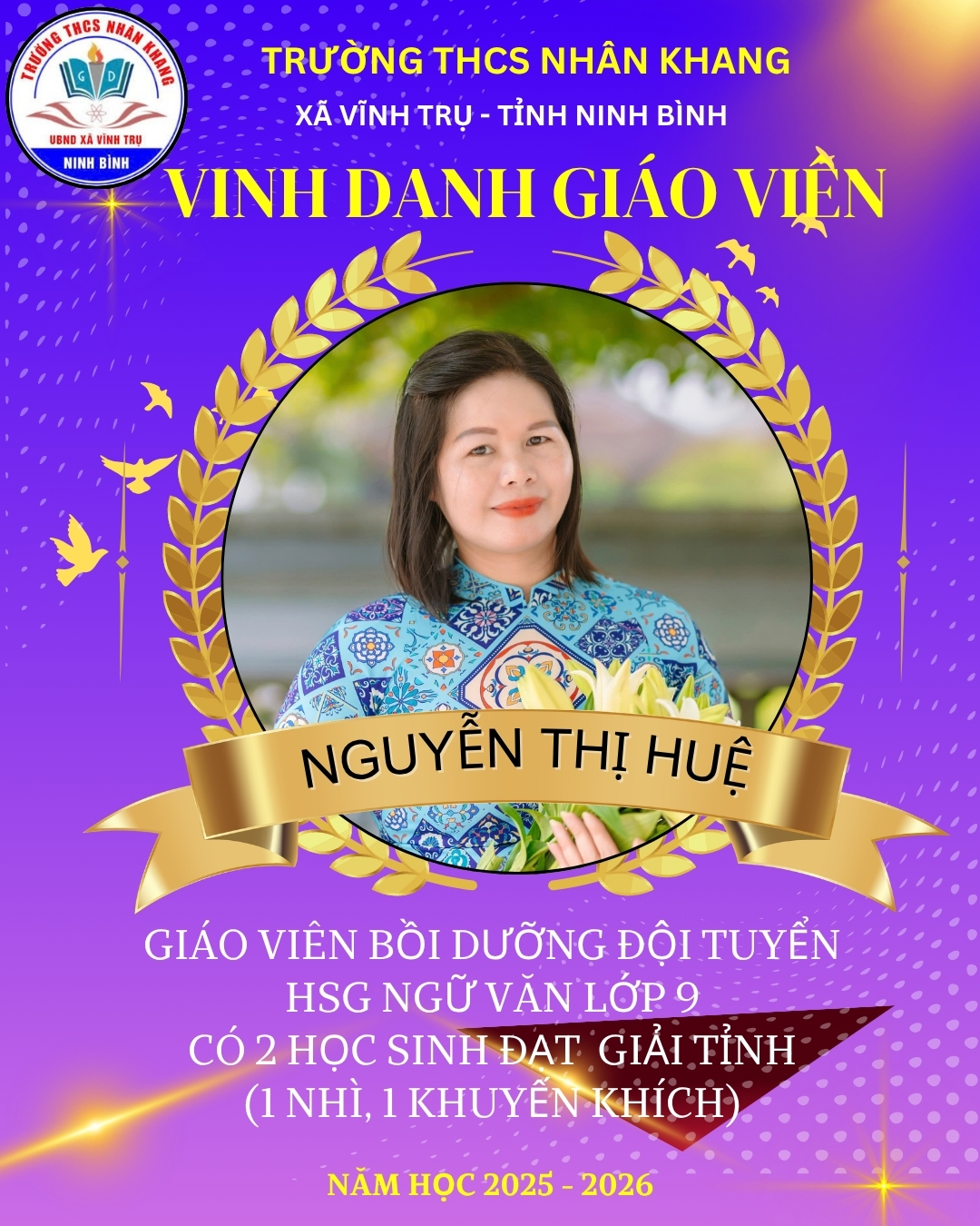 Trường THCS Nhân Khang tự hào biểu dương và chúc mừng giáo viên và học sinh đã xuất sắc đạt thành tích trong Kỳ thi học sinh giỏi cấp tỉnh năm học 2025-2026