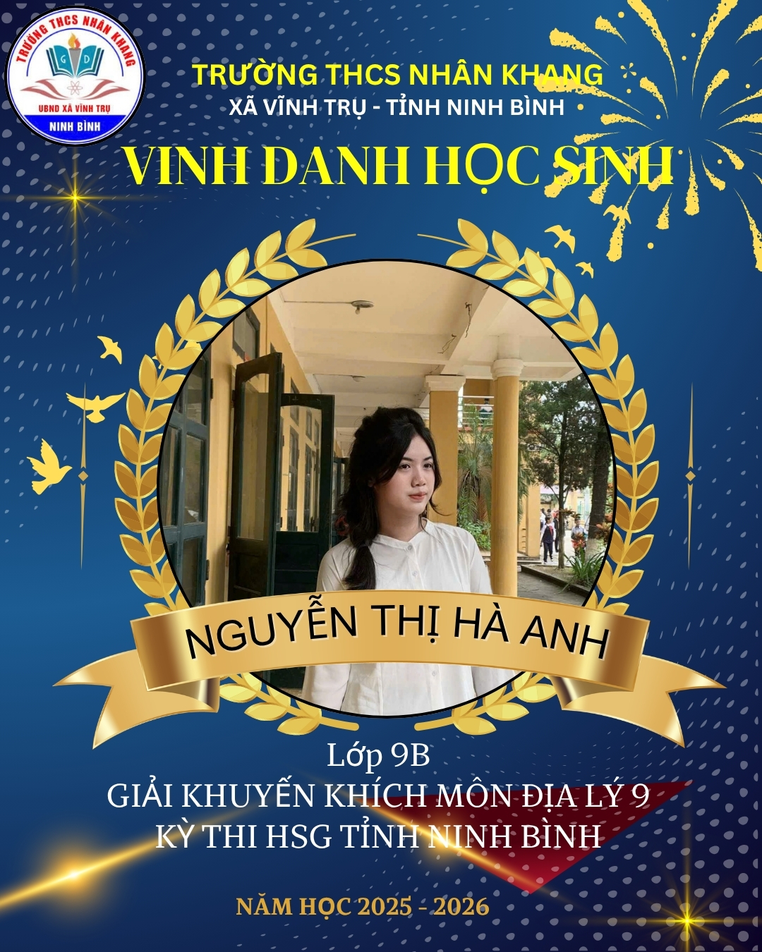 Em: Nguyễn Thị Hà Anh – Lớp 9b giải khuyến khích môn địa lý 9